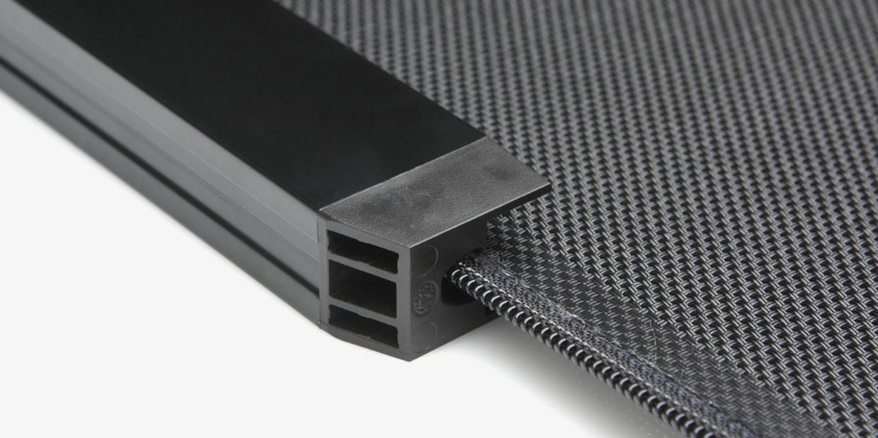 Tightly integrated with the shade fabric and hidden behind the slim frame channels, z-Lock connects the left and right sides of the system’s hardware with a completely streamlined and gap-free finish. z-Lock fastens the fabric securely and creates a strong, smooth and frictionless path for the shade whilst ensuring a perfect seal on all sides.
